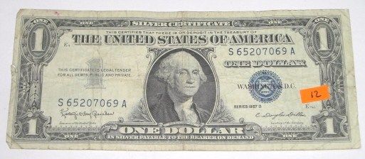 1957 SERIES B $1 SILVER CERTIFICATE SERIAL #S65207069A *NICE EARLY U.S. BILL!! ***Coin, Currency & All Items Listed in this auction - Grades, Conditions and Values are not Safe Deposit Coins LLC Responsibilty. Grades, Condition and Values are determined by Consigner(s) & Buyers ONLY