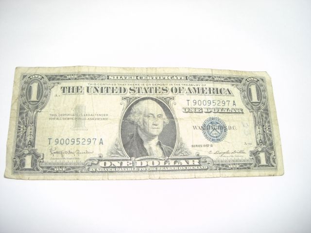 1957 SERIES B $1 SILVER CERTIFICATE *SERIAL #T90095297A*!! ***Coin, Currency & All Items Listed in this auction - Grades, Conditions and Values are not Safe Deposit Coins LLC Responsibilty. Grades, Condition and Values are determined by Consigner(s) & Buyers ONLY***