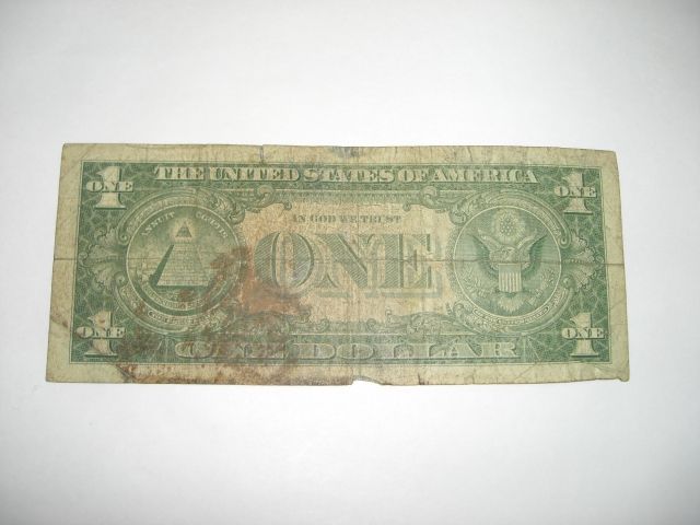 1957 SERIES B $1 SILVER CERTIFICATE SERIAL # W94384586A *PLEASE LOOK AT PICTURE TO DETERMINE GRADE*! ***Coin, Currency & All Items Listed in this auction - Grades, Conditions and Values are not Safe Deposit Coins LLC Responsibilty. Grades, Condition and Values are determined by Consigner(s) & Buyers ONLY