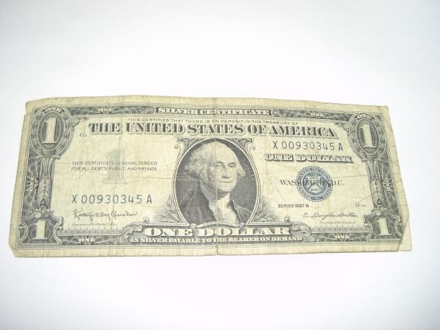 1957 SERIES B $1 SILVER CERTIFICATE *SERIAL #X00930345A*!! ***Coin, Currency & All Items Listed in this auction - Grades, Conditions and Values are not Safe Deposit Coins LLC Responsibilty. Grades, Condition and Values are determined by Consigner(s) & Buyers ONLY***
