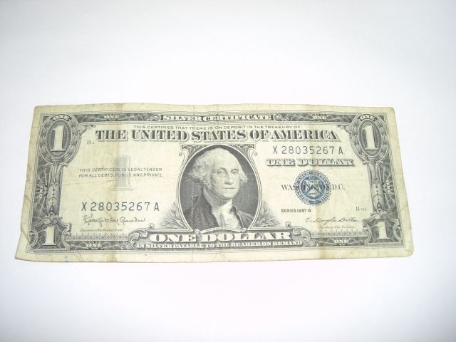 1957 SERIES B $1 SILVER CERTIFICATE *SERIAL #X28035267A*!! ***Coin, Currency & All Items Listed in this auction - Grades, Conditions and Values are not Safe Deposit Coins LLC Responsibilty. Grades, Condition and Values are determined by Consigner(s) & Buyers ONLY***