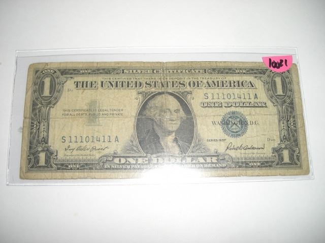 1957 SERIES EXTREMELY RARE SILVER CERTIFICATE *SAME 6 DIGIT* $1.00 SERIAL # S11101411A. DOLLAR CAME OUT OF SAFE!! ***Coin, Currency & All Items Listed in this auction - Grades, Conditions and Values are not Safe Deposit Coins LLC Responsibilty. Grades, Condition and Values are determined by Consigner(s)