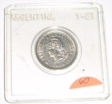 1957 SILVER ARGENTINA 20 CENTAVOS *RARE MS-65 HIGH GRADE!! COIN CAME OUT OF SAFE!! ***Coin, Currency & All Items Listed in this auction - Grades, Conditions and Values are not Safe Deposit Coins LLC Responsibilty. Grades, Condition and Values are determined by Consigner(s) & Buyers ONLY