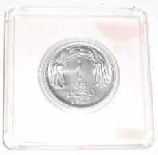 1957 SILVER CHILE 1 PESO *RARE MS-65 HIGH GRADE!! COIN CAME OUT OF SAFE!! ***Coin, Currency & All Items Listed in this auction - Grades, Conditions and Values are not Safe Deposit Coins LLC Responsibilty. Grades, Condition and Values are determined by Consigner(s) & Buyers ONLY