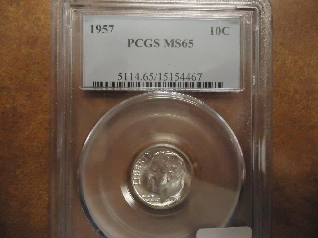 1957 SILVER ROOSEVELT DIME PCGS MS65