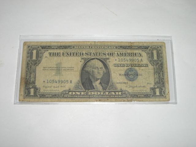 1957 STAR NOTE SERIES A $1 SILVER CERTIFICATE NOTE *RARE STAR NOTE - NICE BILL* Serial# *10549905A!! ***Coin, Currency & All Items Listed in this auction - Grades, Conditions and Values are not Safe Deposit Coins LLC Responsibilty. Grades, Condition and Values are determined by Consigner(s) & Buyers ONLY***