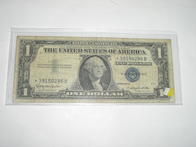 1957 STAR NOTE SERIES B $1 SILVER CERTIFICATE NOTE *RARE STAR NOTE - NICE BILL* Serial# *39150296B!! ***Coin, Currency & All Items Listed in this auction - Grades, Conditions and Values are not Safe Deposit Coins LLC Responsibilty. Grades, Condition and Values are determined by Consigner(s) & Buyers ONLY***