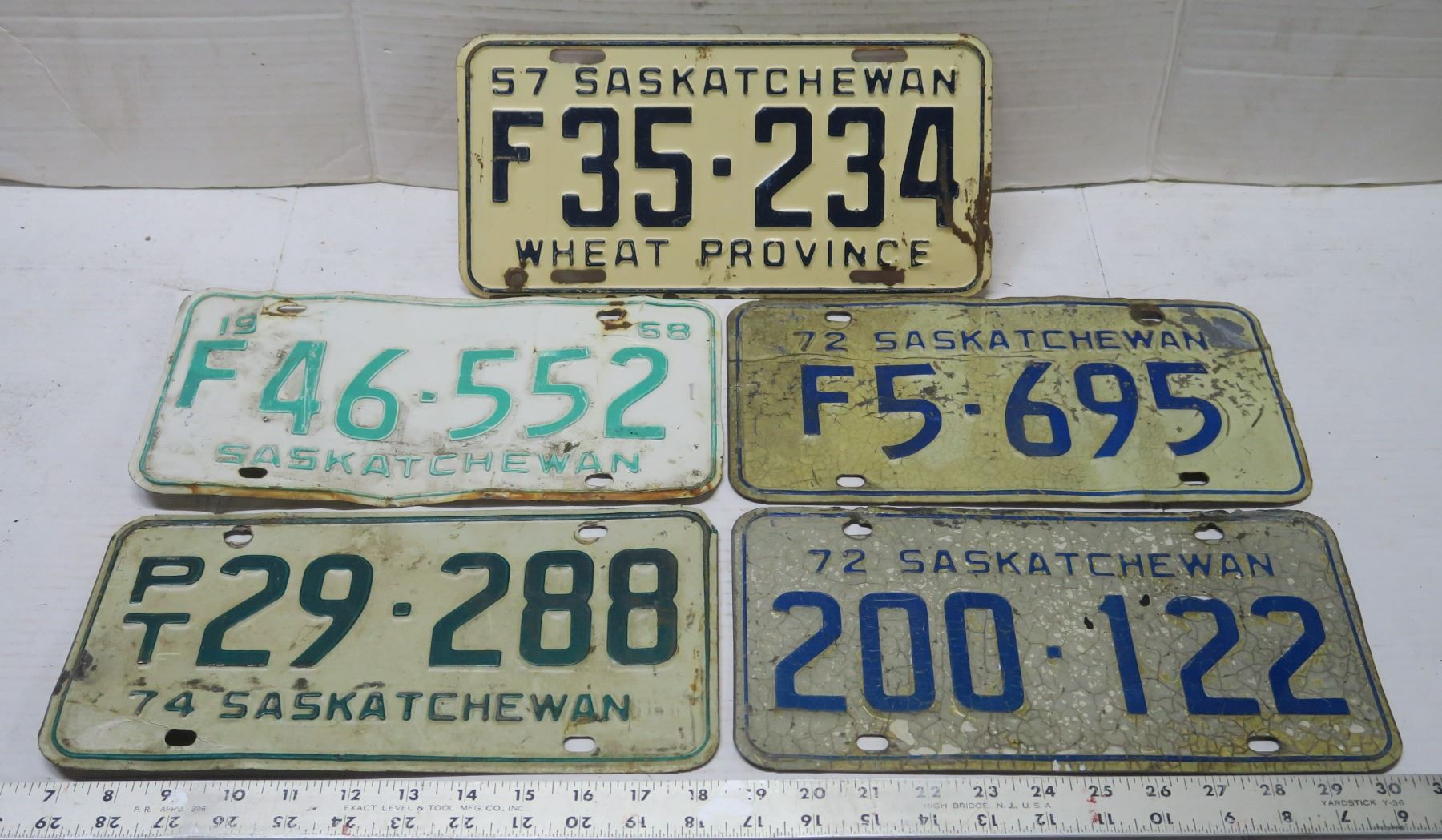 1957 Sask Farm License Plate & 4 Other Sask Plates