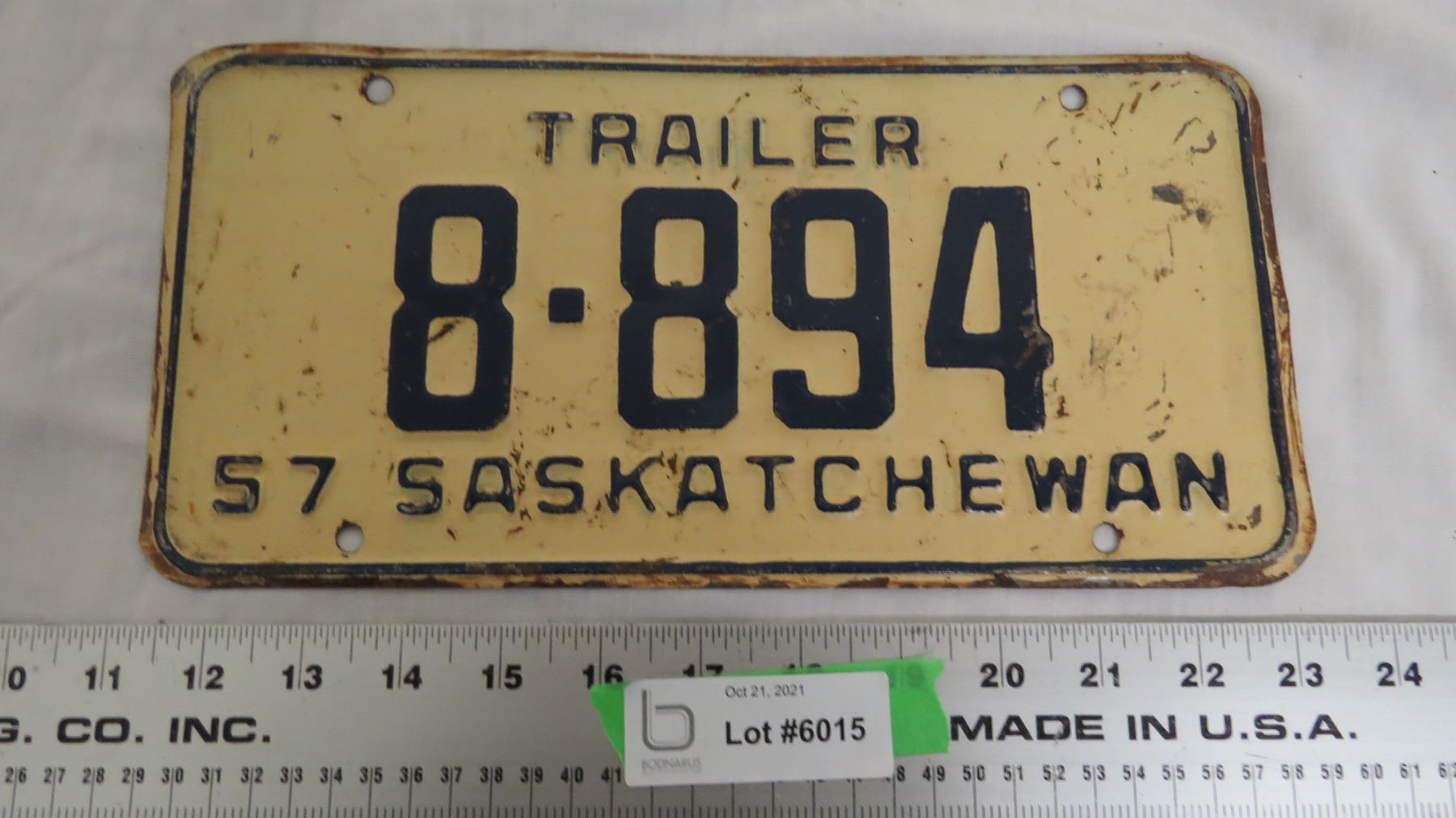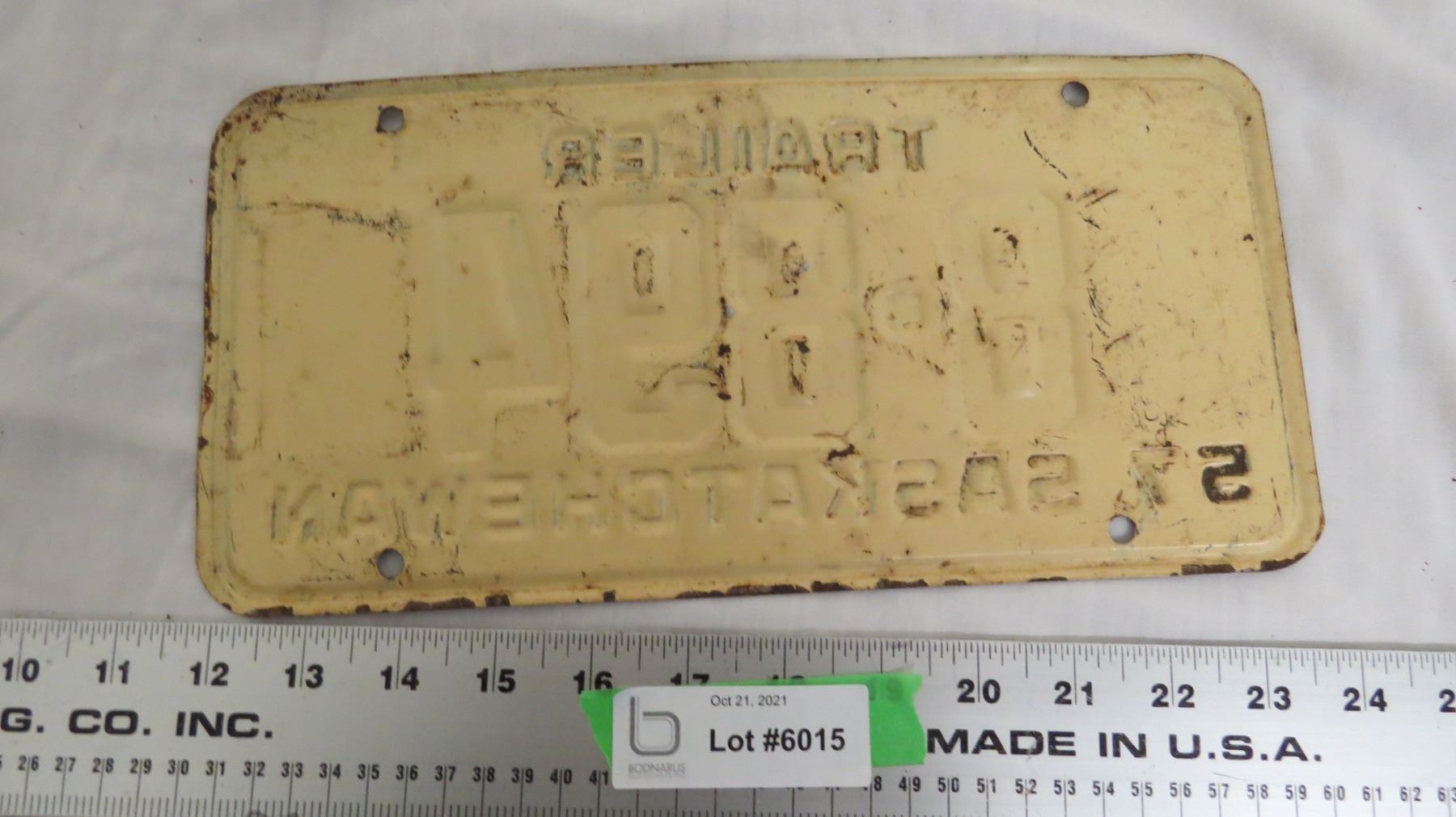 1957 Sask Trailer License Plate