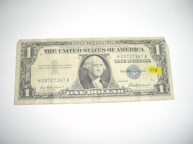 1957 Series $1 *SILVER CERTIFICATE* Dollar Bill Serial # H09727367A!! ***Coin & Currency Grades, Conditions and Values are not Northern Colorado Estate Liquidators Responsibilty. Grades, Condition and Values are determined by Consigner(s) & Buyers ONLY***