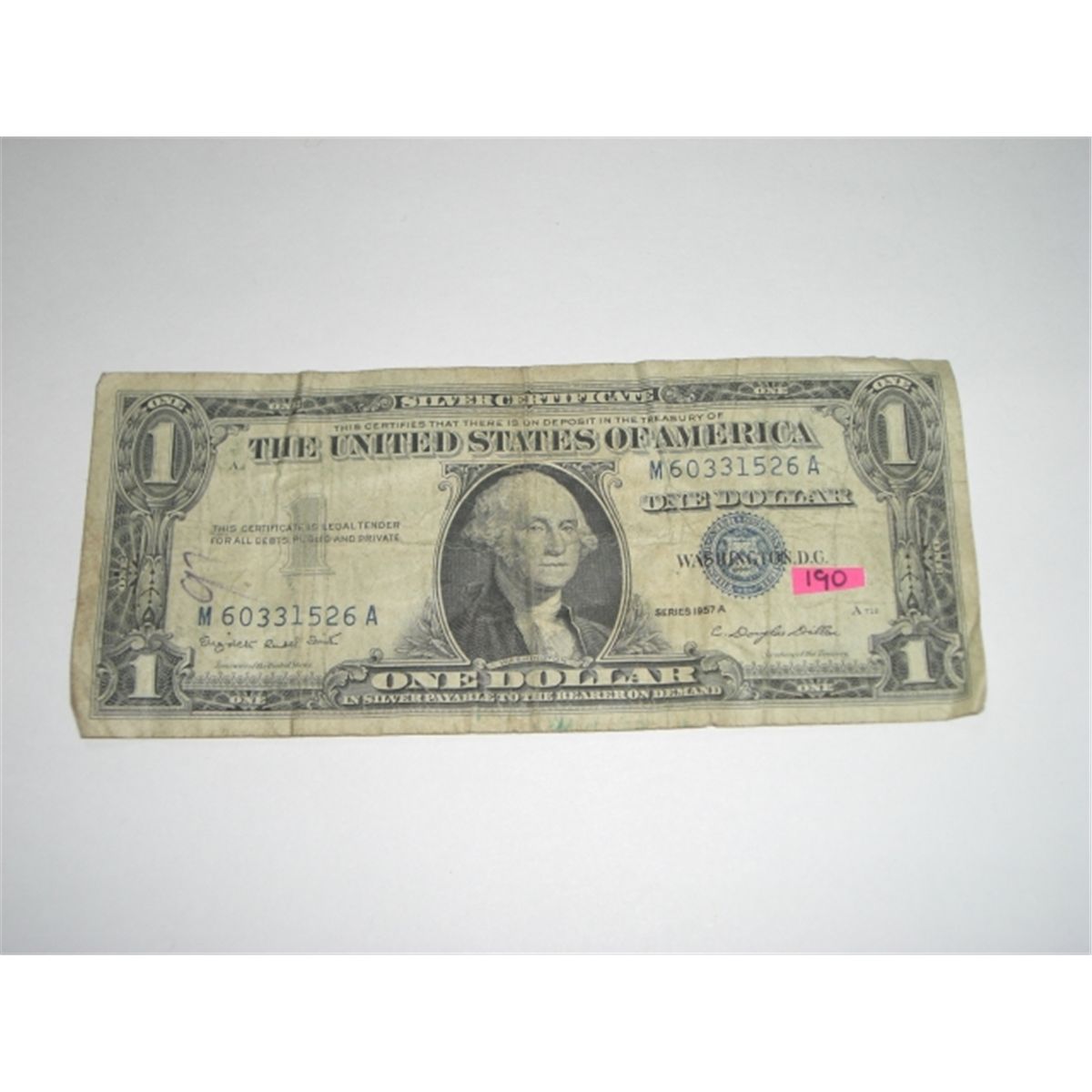 1957 Series A $1 Silver Certificate Serial # M60331526A!! ***Coin, Gemstone & All Items Listed in this auction - Grades, Conditions and Values are not Safe Deposit Coins LLC Responsibilty. Grades, Condition and Values are determined by Consigner(s) & Buyers ONLY***
