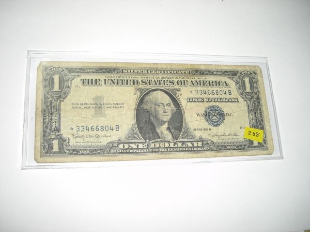 1957 Series B *STAR NOTE* $1 *SILVER CERTIFICATE* Dollar Bill Serial # *33466804B!! ***Coin & Currency Grades, Conditions and Values are not Northern Colorado Estate Liquidators Responsibilty. Grades, Condition and Values are determined by Consigner(s) & Buyers ONLY***
