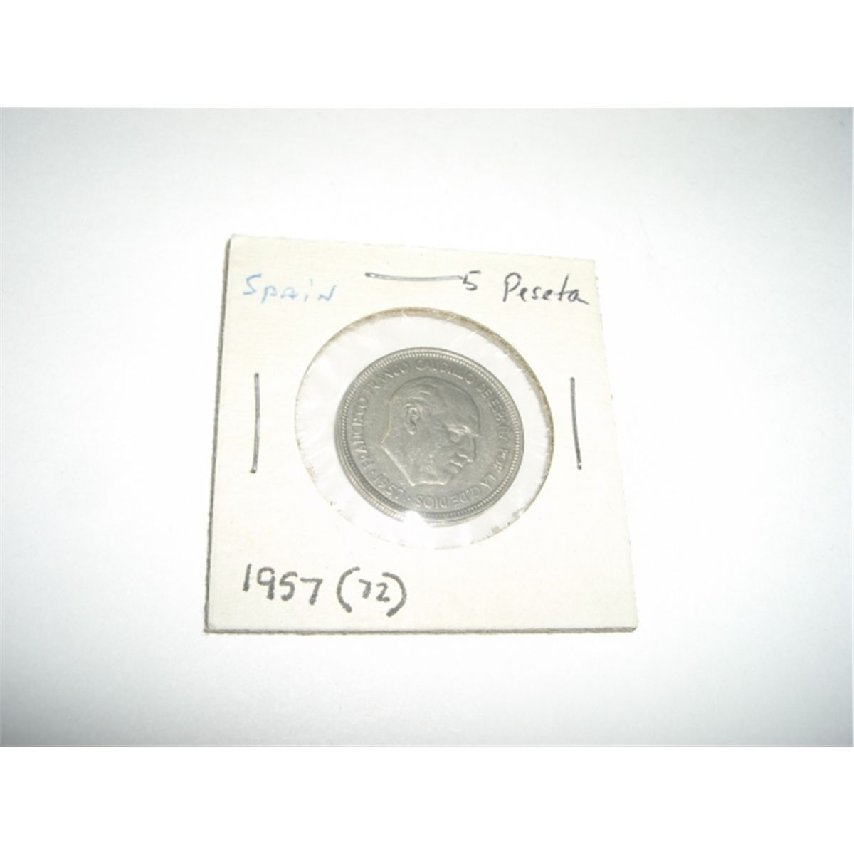 1957 Spain 5 Peseta *72 INSIDE STAR*!! ***Coin, Currency & All Items Listed in this auction - Grades, Conditions and Values are not Safe Deposit Coins LLC Responsibilty. Grades, Condition and Values are determined by Consigner(s) & Buyers ONLY***