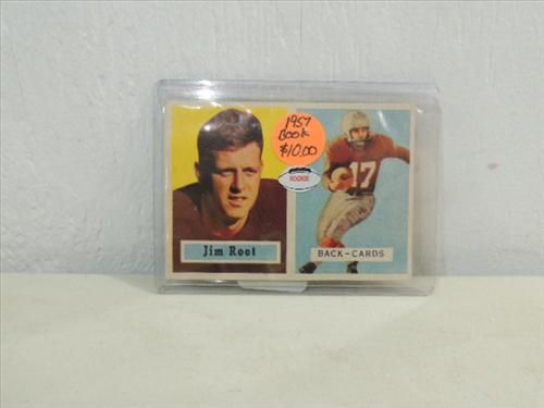 1957 TOPPS #112 FOOTBALL ROOKIE CARD JIM ROOT. AS SHOWN. VIEW PICTURE FOR DETAIL.