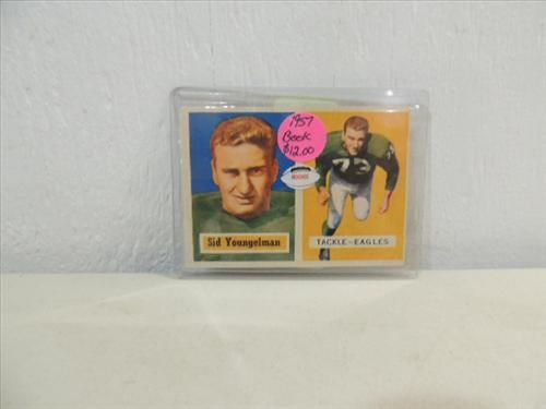 1957 TOPPS #145 FOOTBALL ROOKIE CARD SID YOUNGELMAN. AS SHOWN. VIEW PICTURE FOR DETAIL.