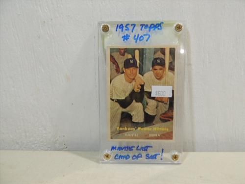 1957 TOPPS #407 BASEBALL CARD MICKEY MANTLE & YOGI BERRA. AS SHOWN. VIEW PICTURE FOR DETAIL.