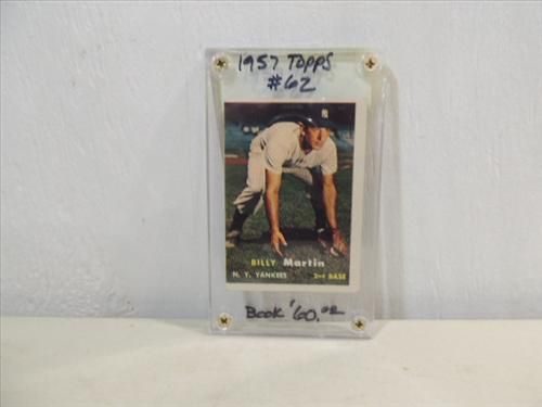 1957 TOPPS #62 BASEBALL PLAYER CARD BILLY MARTIN. AS SHOWN. VIEW PICTURE FOR DETAIL.