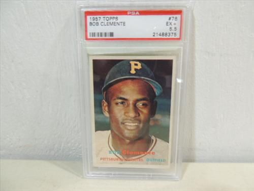 1957 TOPPS #76 GRADED BASEBALL CARD BOB CLEMENTE. GRADED PSA EX+ 5.5. AS SHOWN. VIEW PICTURE FOR DETAIL.