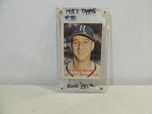 1957 TOPPS #90 BASEBALL PLAYER CARD WARREN SPAHN. AS SHOWN. VIE WPICTURE FOR DETAIL.