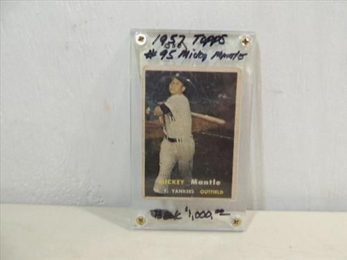 1957 TOPPS #95 BASEBALL PLAYER CARD MICKEY MANTLE. AS SHOWN. VIEW PICTURE FOR DETAIL.