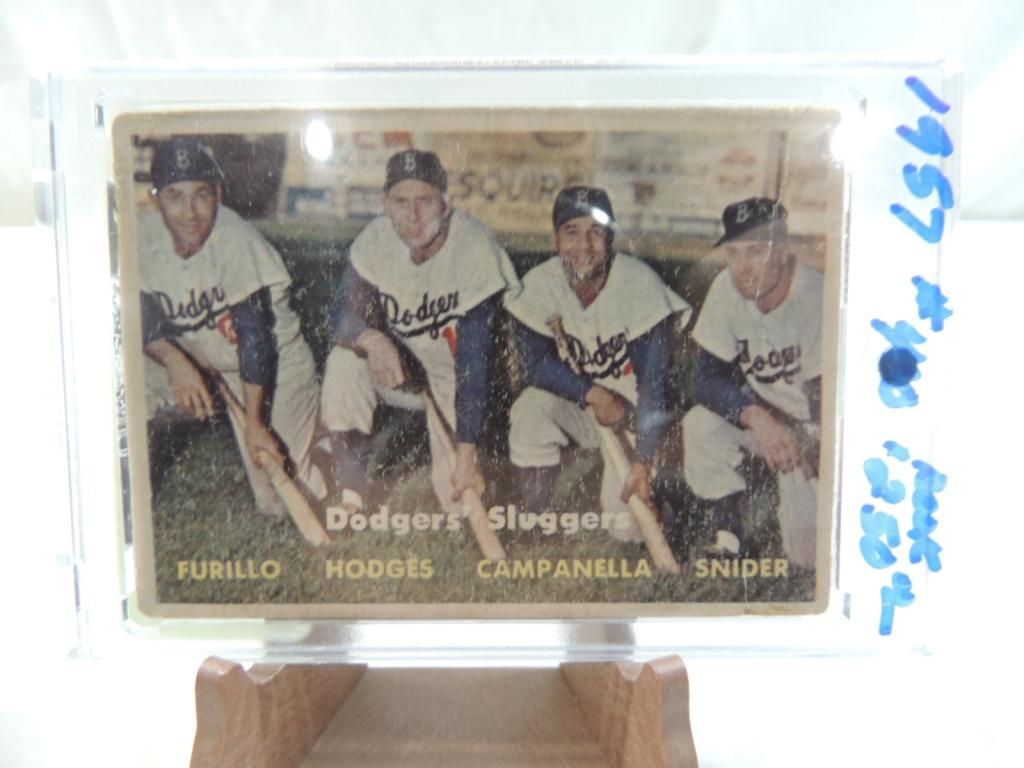 DODGERS SLUGGERS FURILLO HODGES CAMPANELLA SNIDER VINTAGE BASEBALL CARD. GREAT CONDITION. PROTECTIVE PLASTIC SCREW DOWN CASE. TRADING CARD. COLLECTIBLE BASEBALL MEMORABILIA. AS SHOWN SEE PHOTO FOR MORE DETAILS.