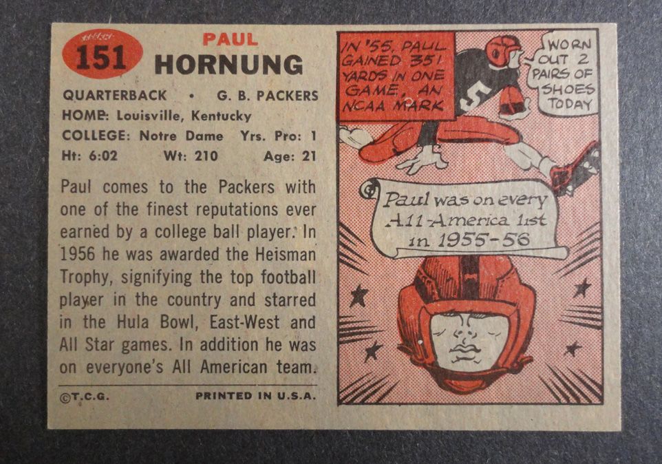 1957 TOPPS FOOTBALL STARTER SET (74 cds) HORNUNG ROOKIE EM++, REST EM+-EX+
