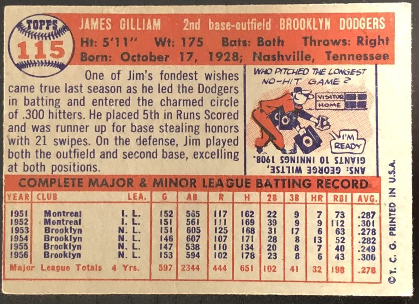 Card #115 MLB, baseball, vintage