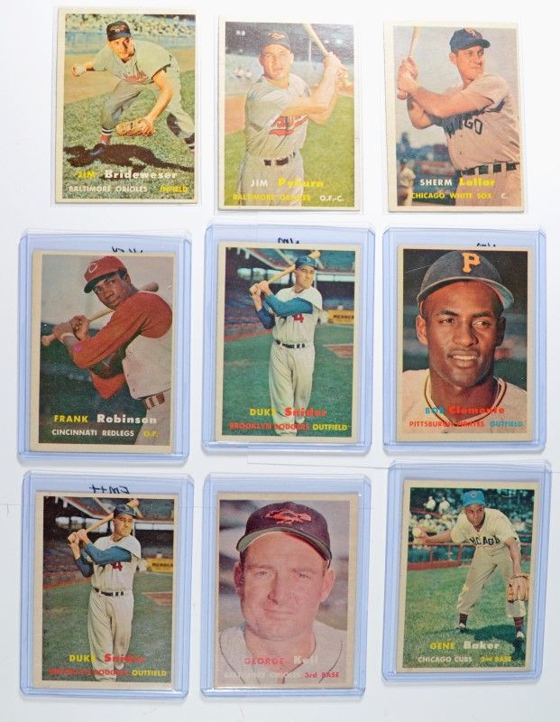 1957 TOPPS LOT (9 cds) F. ROBINSON ROOKIE, CLEMENTE, 2-SNIDER's
