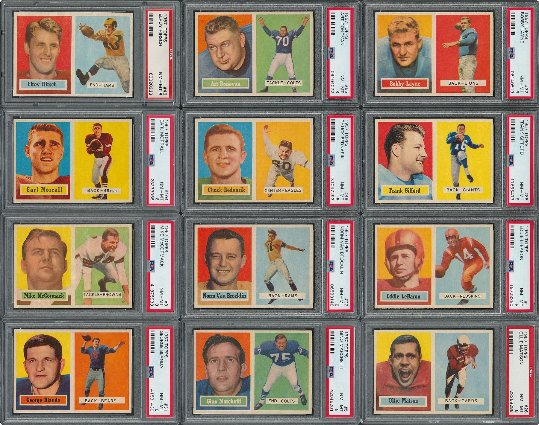 Offered is more than half the 1957 Topps football set, with a total of 81 cards, all graded PSA NM-MT 8. While this lot does not include any of the higher dollar rookie cards, this near-set does contain many stars and Hall of Famers.
