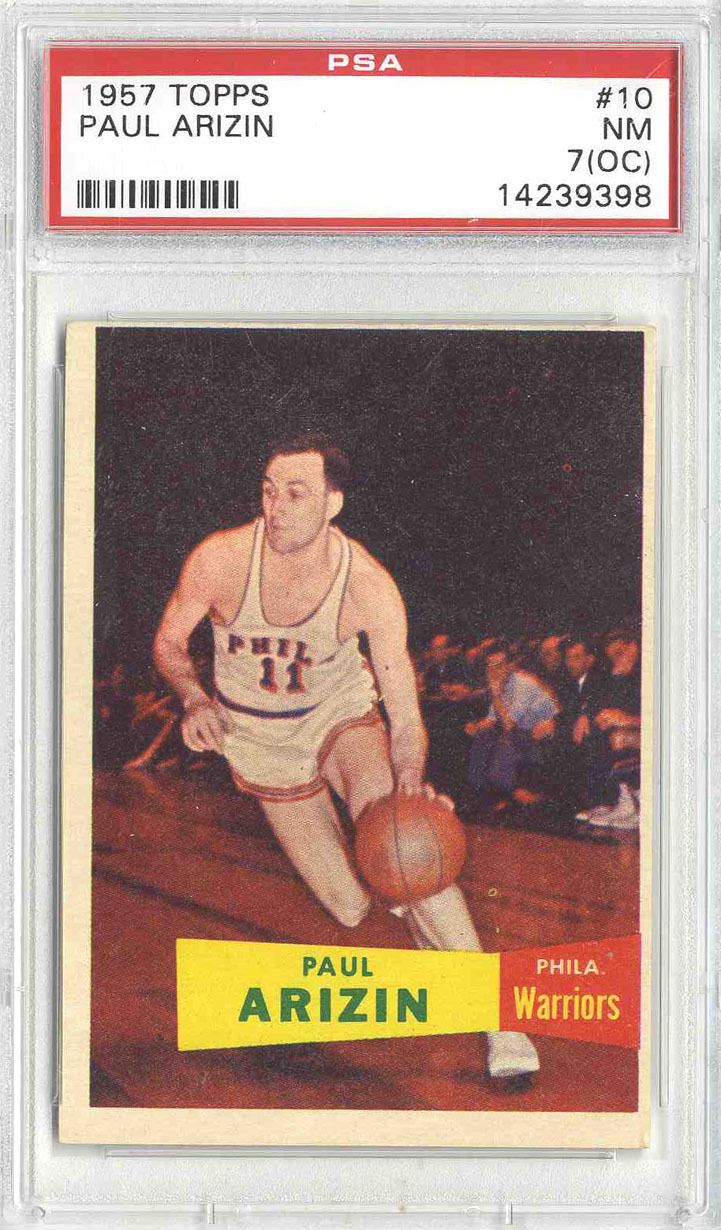 1957 Topps Basketball Card -- Paul Arizin #10 -- PSA 7 (OC)