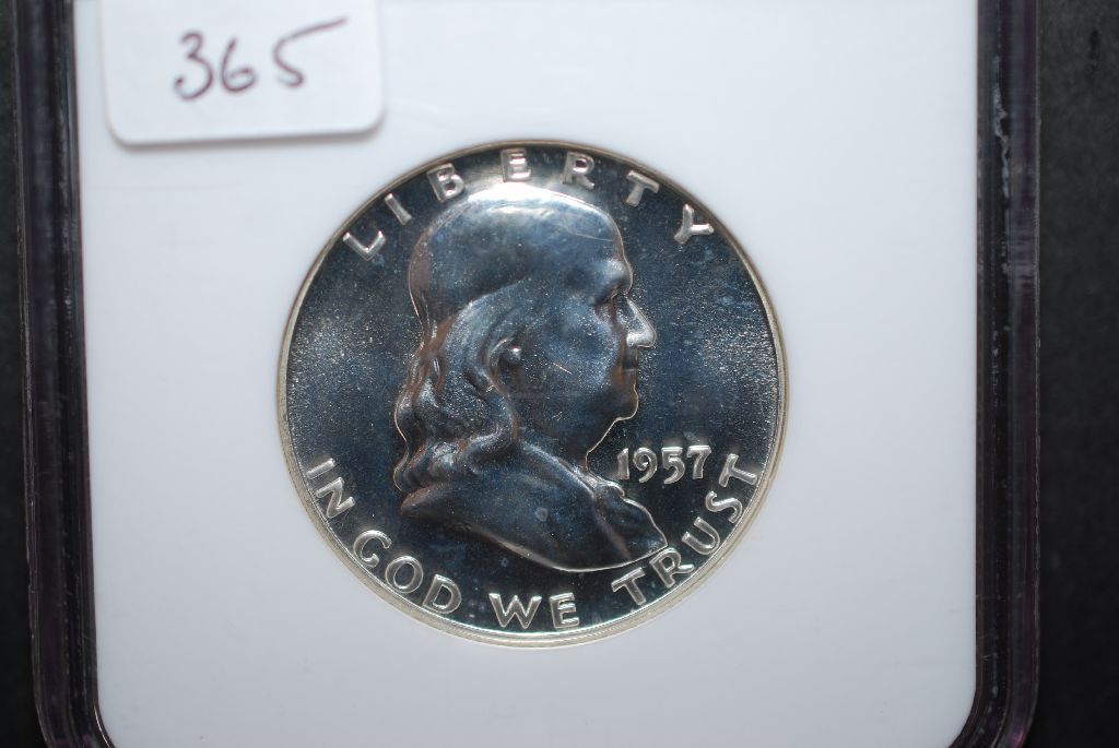 1957 US Ben Franklin Half Dollar; NGC Graded PF67; EST. $40-90