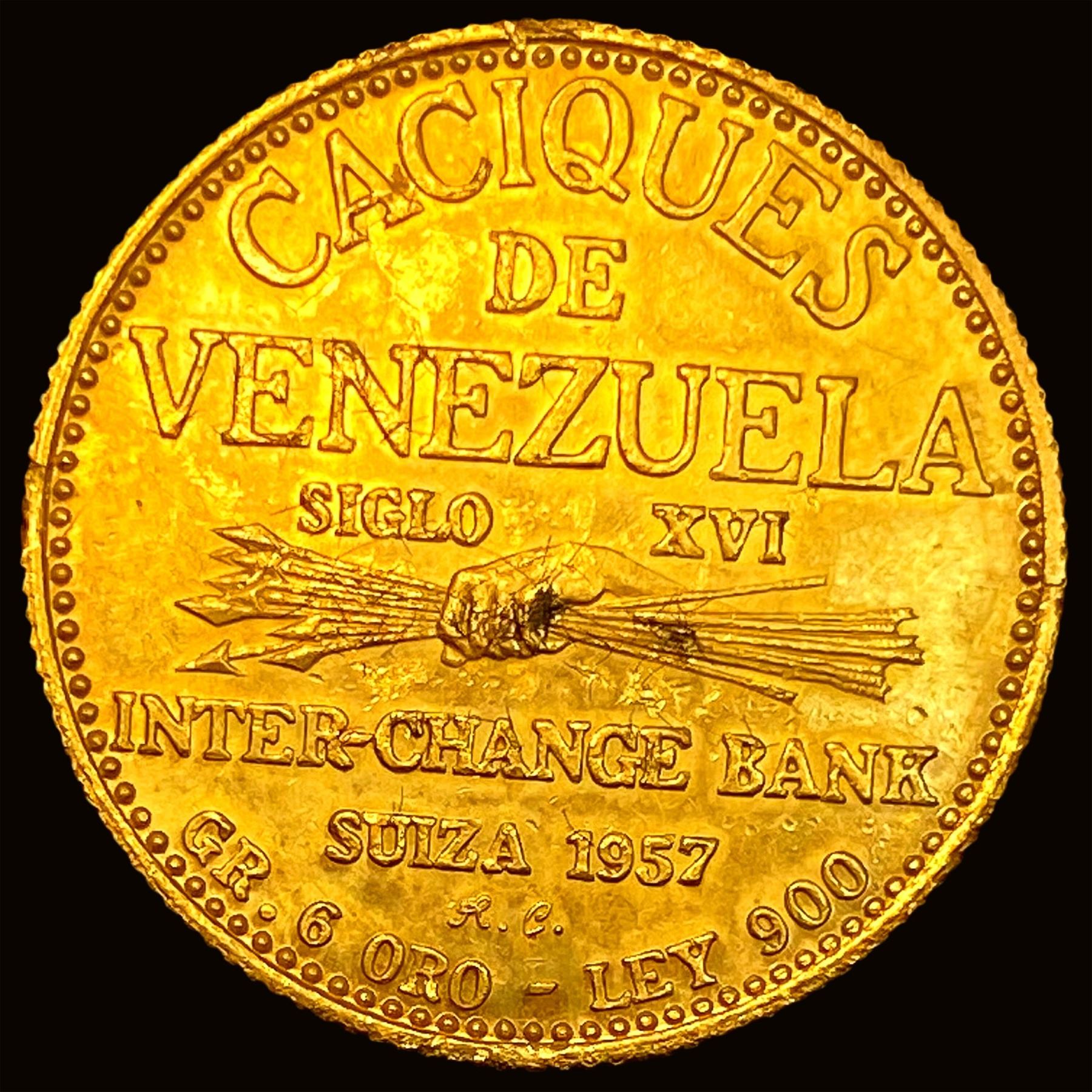 1957 Venezuela .1929oz Gold Caciques Yoraco CLOSELY UNC