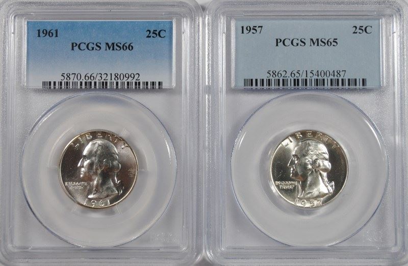 1957 WASHINGTON QUARTER, PCGS MS-65 & 1961 WASHINGTON QUARTER, PCGS MS-66