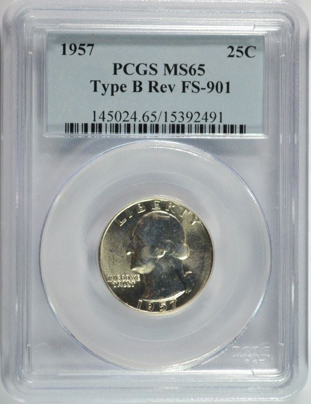 1957 WASHINGTON QUARTER, TYPE-B REVERSE FS-901, PCGS MS-65
