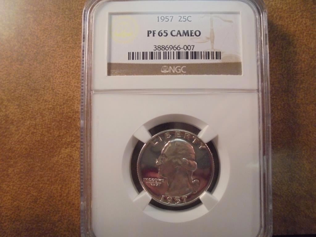 1957 WASHINGTON SILVER QUARTER NGC PF65 CAMEO