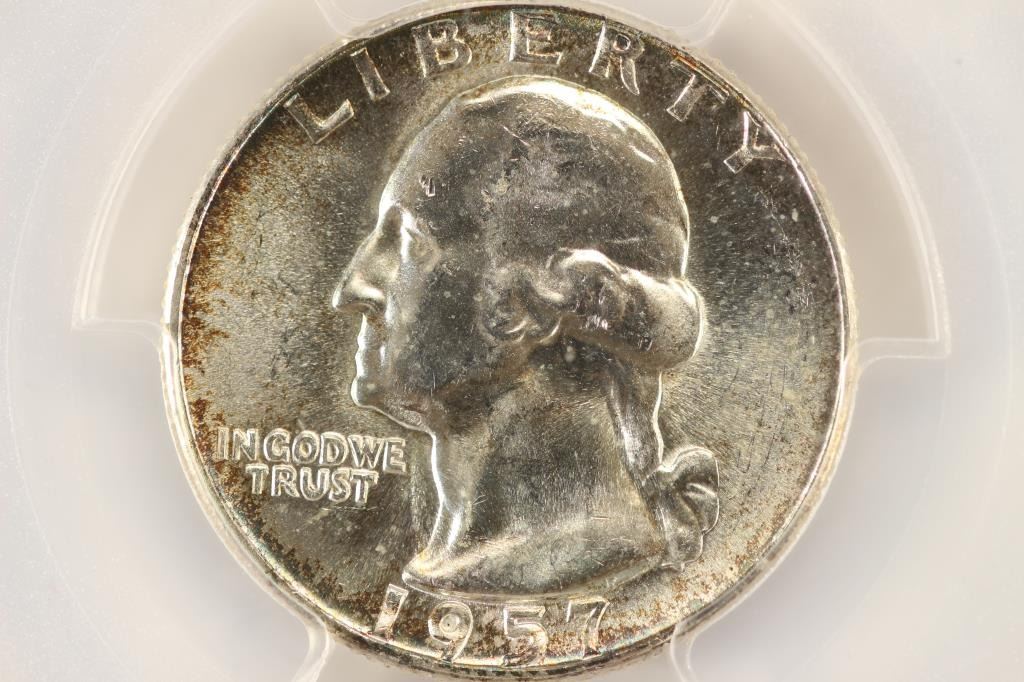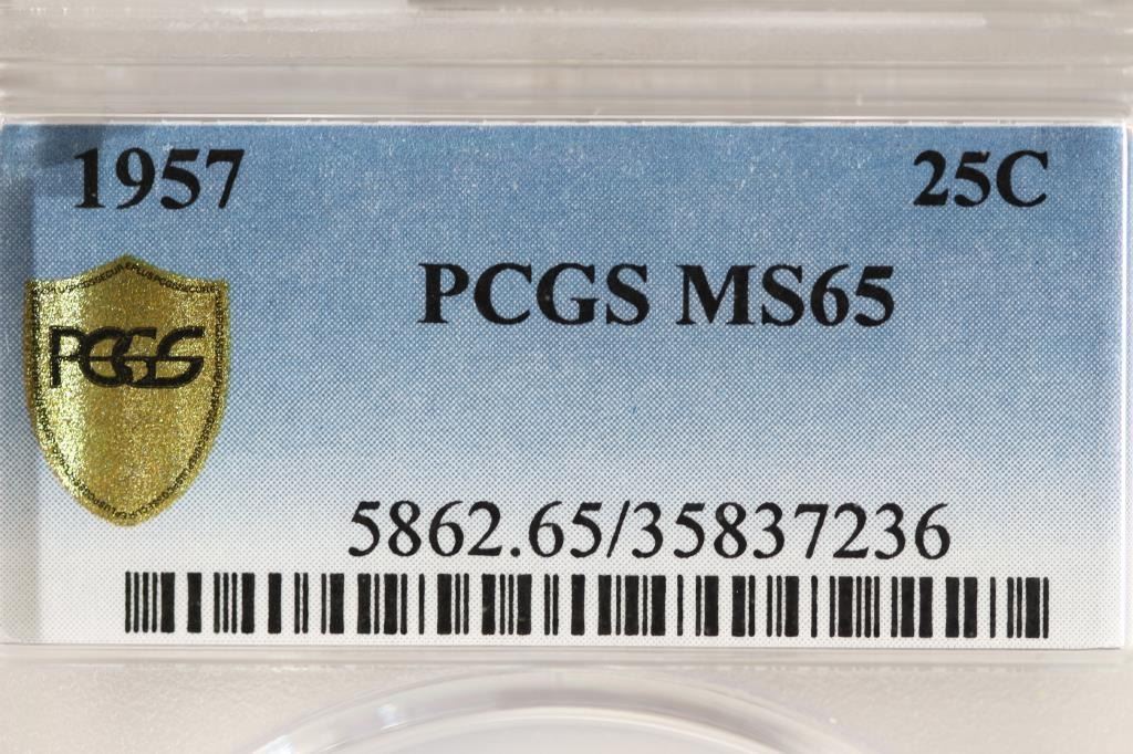 1957 WASHINGTON SILVER QUARTER PCGS MS65