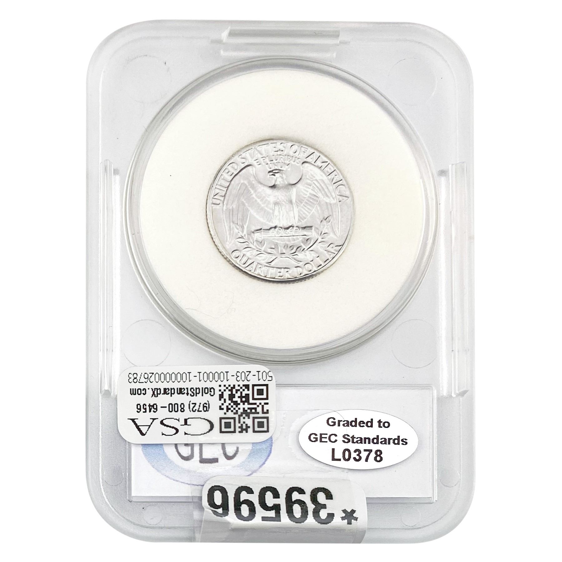 COINS AND CURRENCY LISTED IN GSA’S CATALOG AS GRADED AND ENCAPSULATED BY PCGS, NGC, ANACS, ICG, PCGS CURRENCY, PMG, PCGS BANKNOTE GRADING, CMC OR ANY OTHER THIRD-PARTY GRADING SERVICE ARE LIKEWISE SOLD “AS-IS” EXCEPT AS EXPRESSLY SET FORTH HEREIN. ALL THIRD-PARTY GRADING SERVICE GUARANTEES, INCLUDING AUTHENTICITY, ARE THE SOLE RESPONSIBILITY OF THE THIRD-PARTY GRADING SERVICE AND NOT WARRANTIES OR GUARANTEES OF GSA. BIDDERS SHOULD CONTACT THESE THIRD-PARTY GRADING SERVICES DIRECTLY WITH RESPECT TO ANY CLAIMS OR QUESTIONS THEY MAY HAVE CONCERNING THEIR GUARANTEES AND WARRANTIES. BIDDERS ACKNOWLEDGE AND AGREE THAT AUCTIONEER IS NOT BOUND BY OR LIABLE FOR ANY OPINION OR CERTIFICATION BY ANY THIRD-PARTY GRADING SERVICE. REMOVAL OF A PRODUCT FROM ITS PROTECTIVE CASING OR HOLDER OR ALTERATION OF ANY COIN HOLDER WAIVES ALL RIGHTS CONCERNING THE PRODUCT CONTAINED THEREIN.