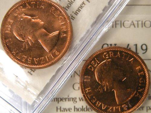 Canada Cent 1957 and 1958, both ICCS MS-65 Red, and both over 95% red