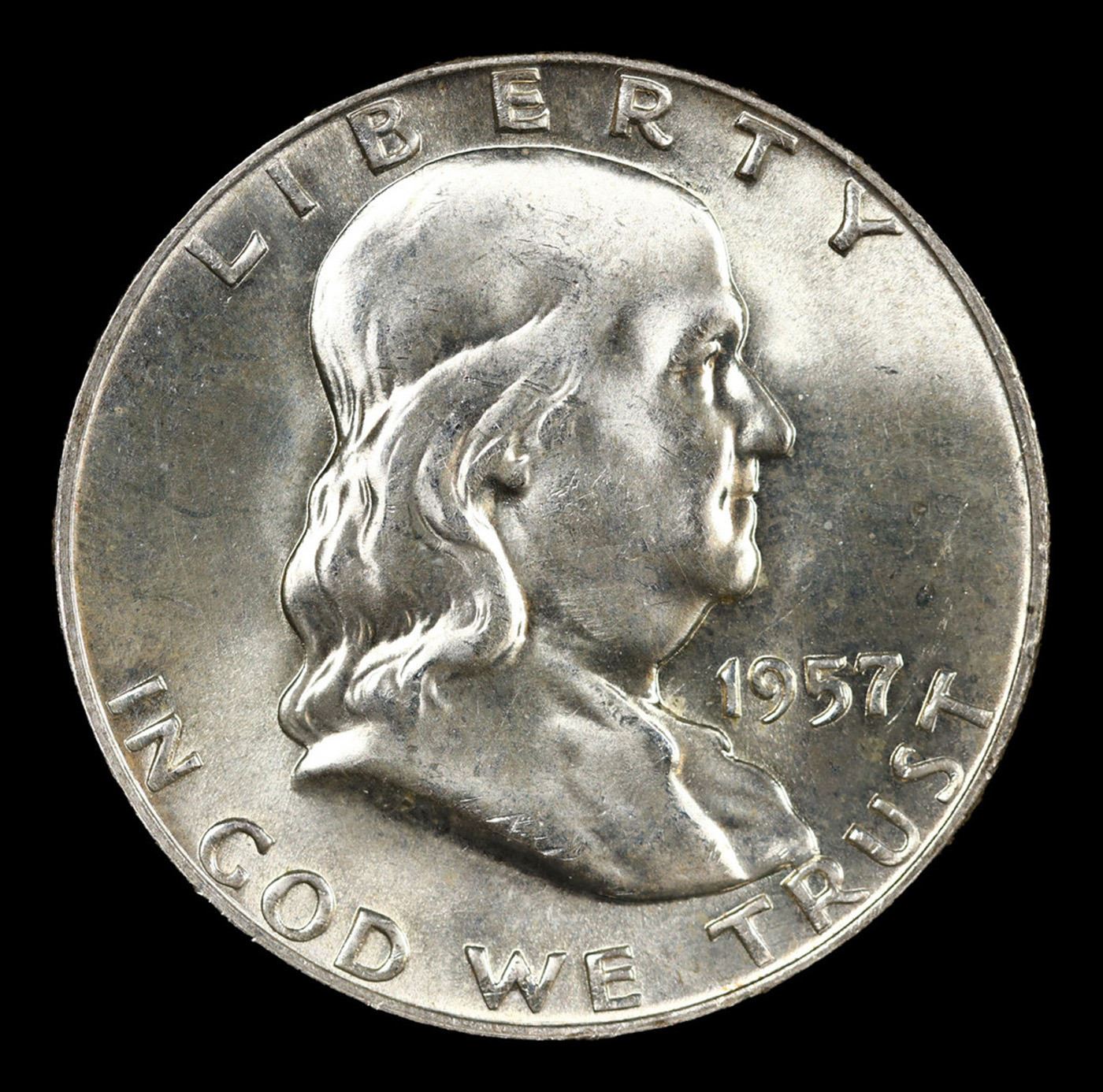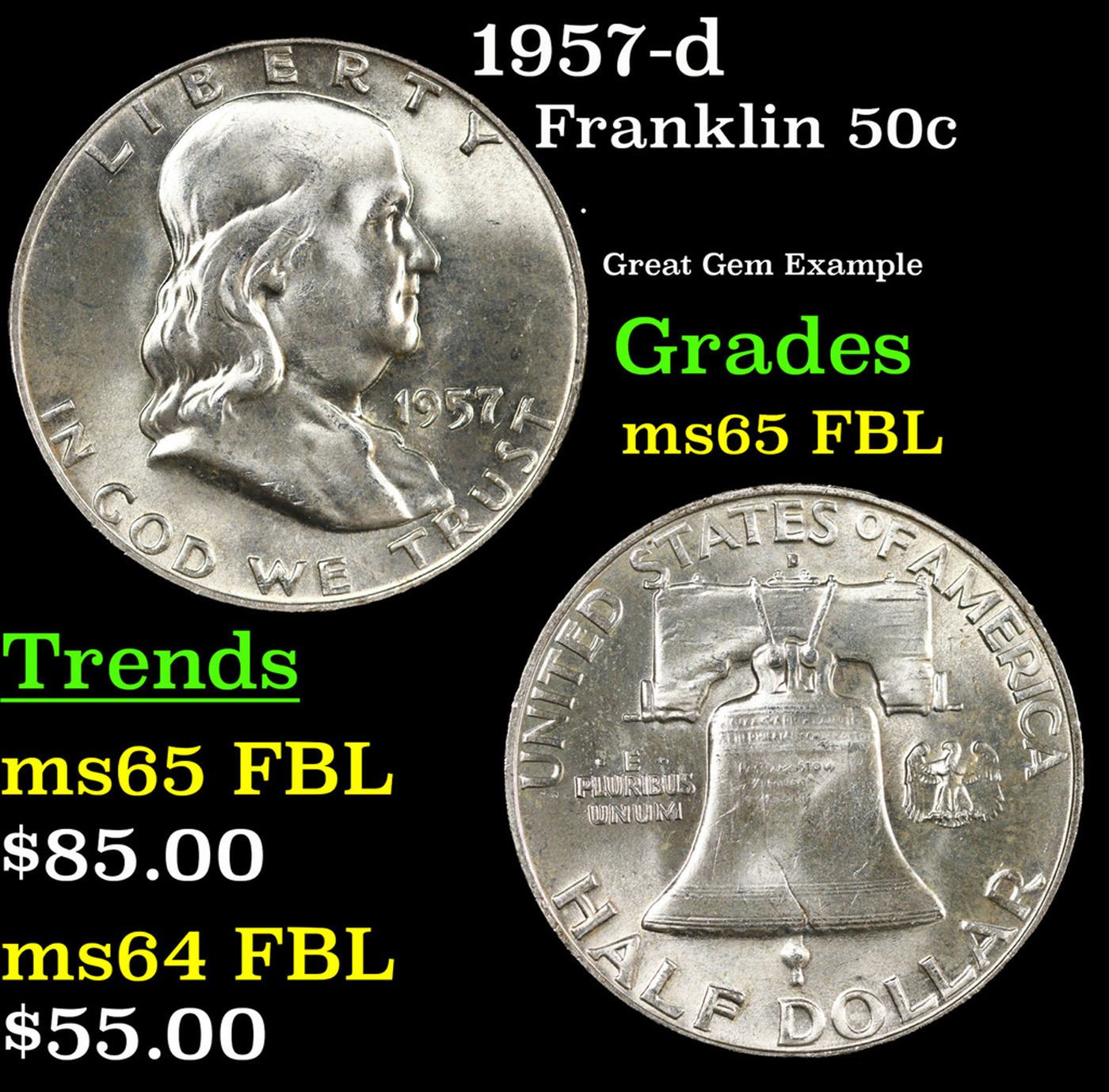 1957-d Franklin Half Dollar 50c Grades GEM FBL.