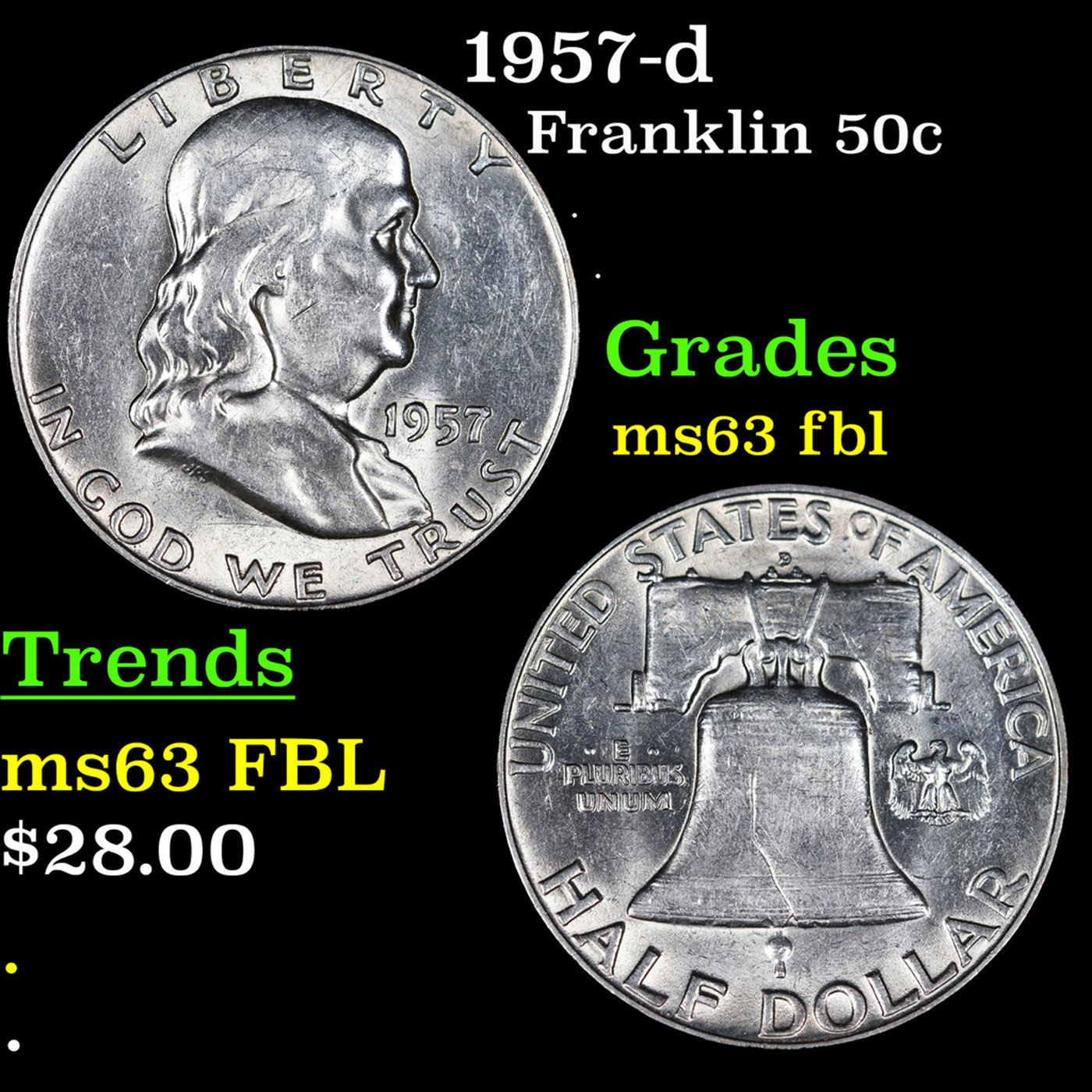 1957-d Franklin Half Dollar 50c Grades Select Unc FBL