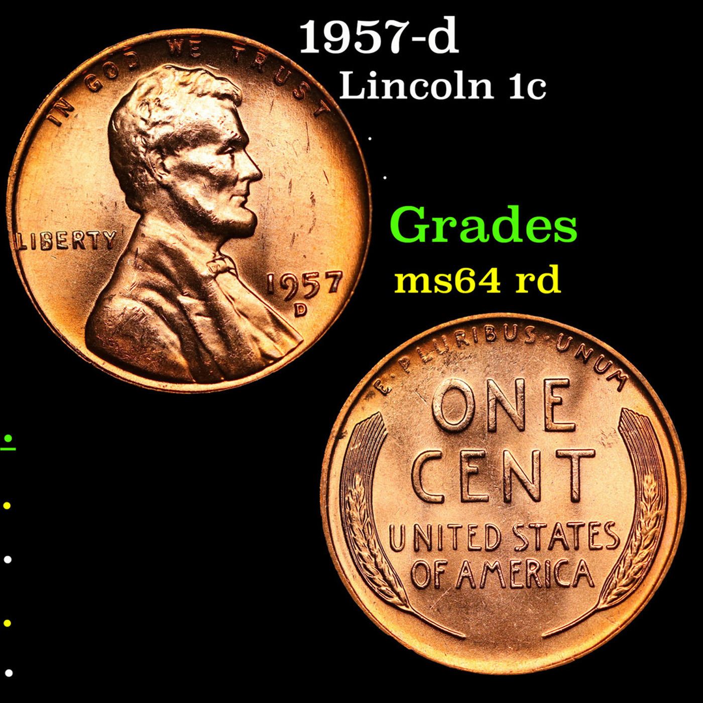 1957-d Lincoln Cent 1c Grades Choice Unc RD.