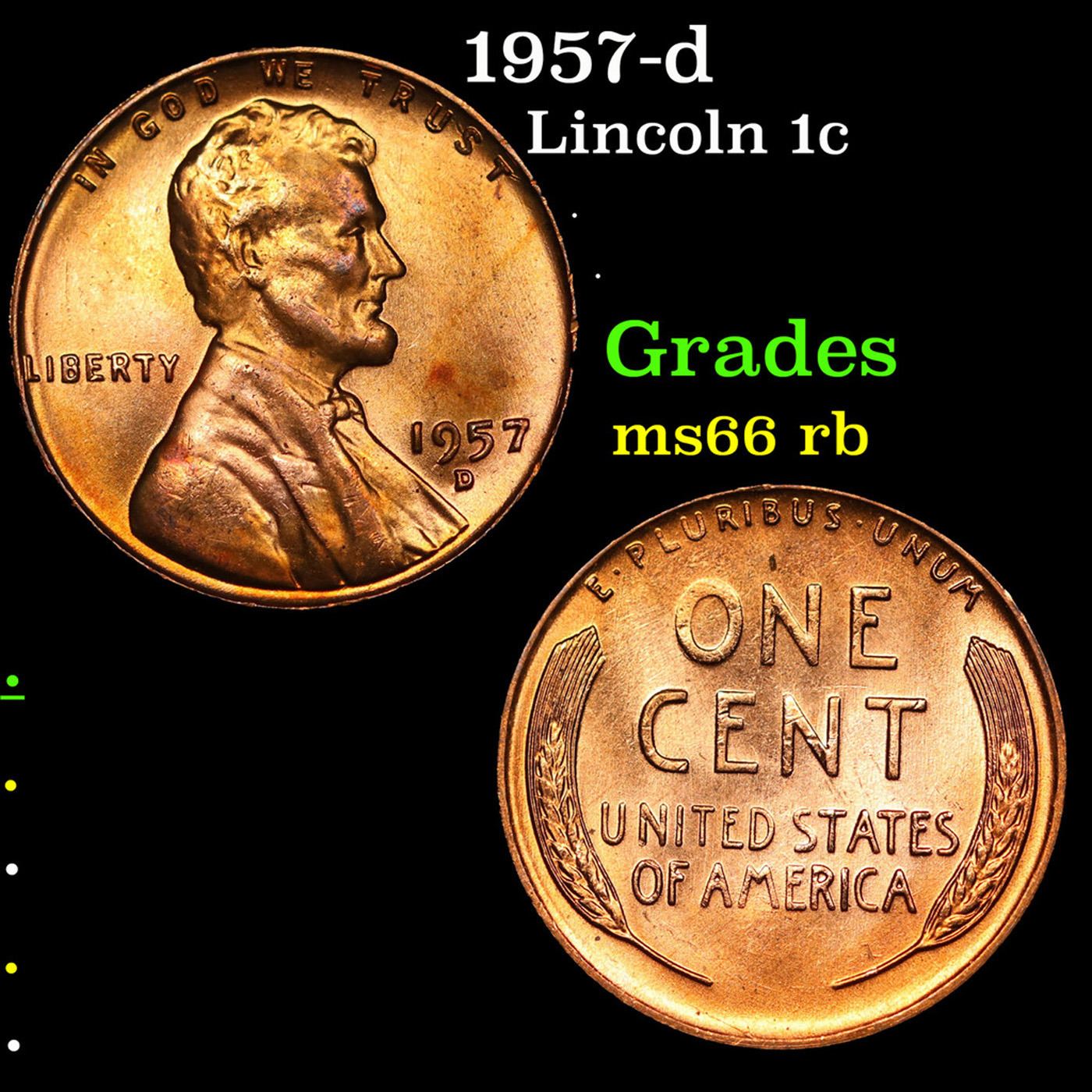 1957-d Lincoln Cent 1c Grades GEM+ Unc RB.
