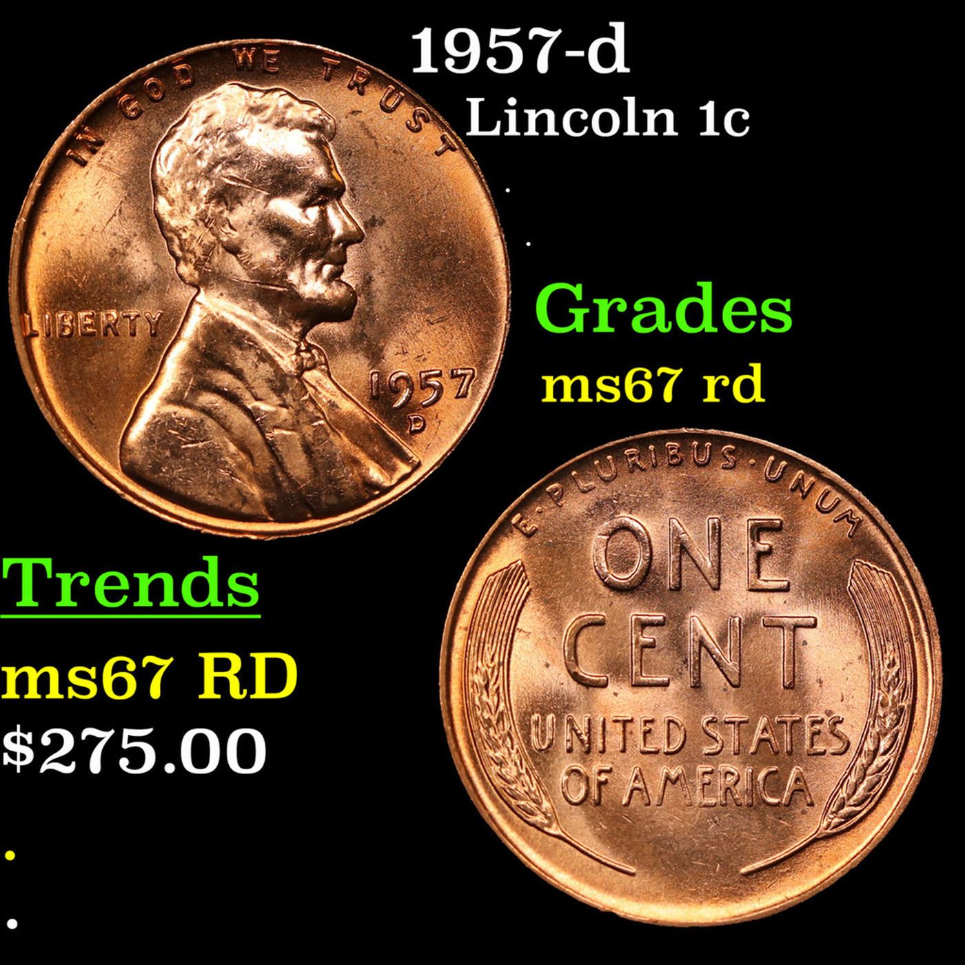 1957-d Lincoln Cent 1c Grades GEM++ Unc RD.