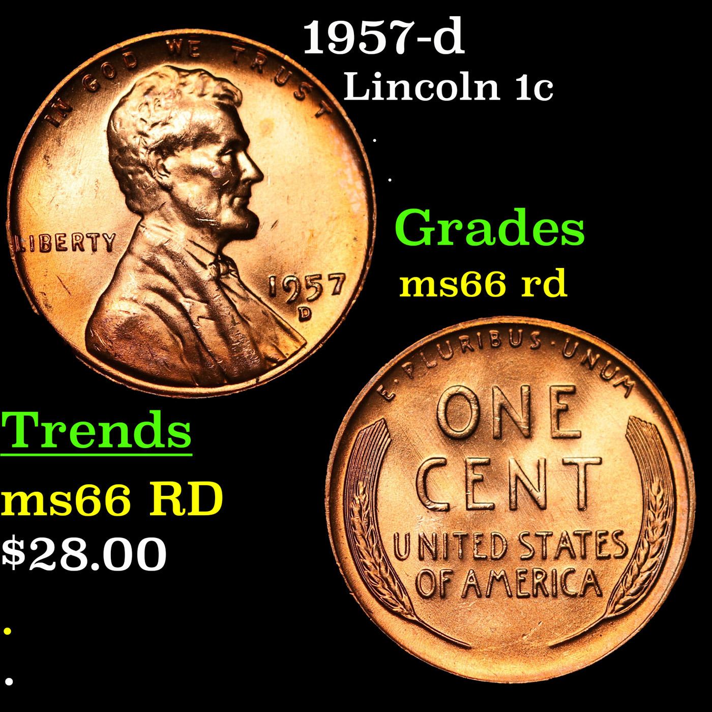 1957-d Lincoln Cent 1c Grades GEM+ Unc RD.