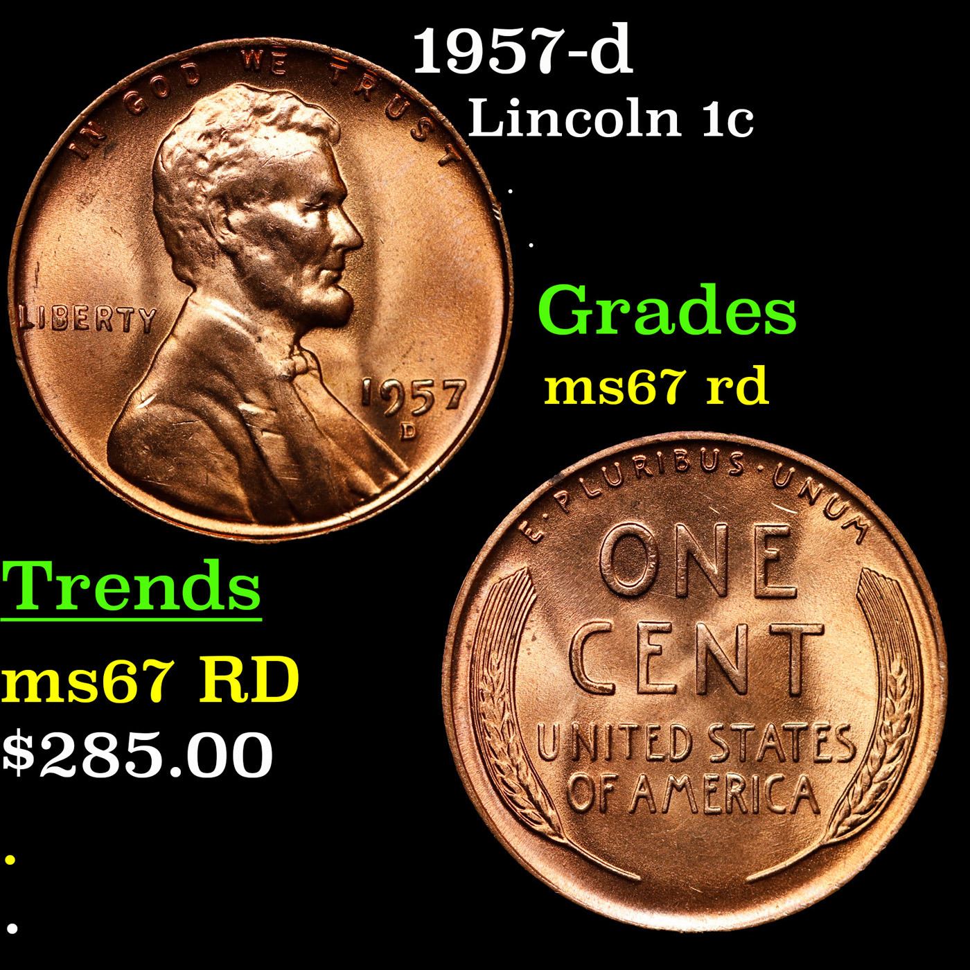 1957-d Lincoln Cent 1c Grades GEM++ Unc RD.
