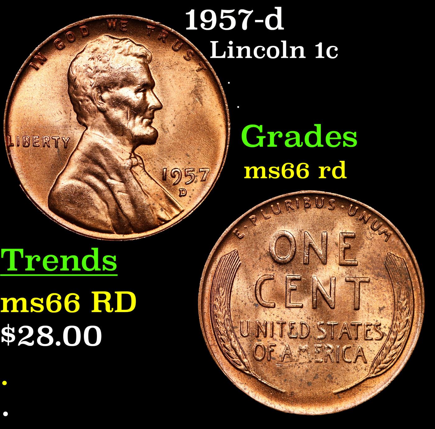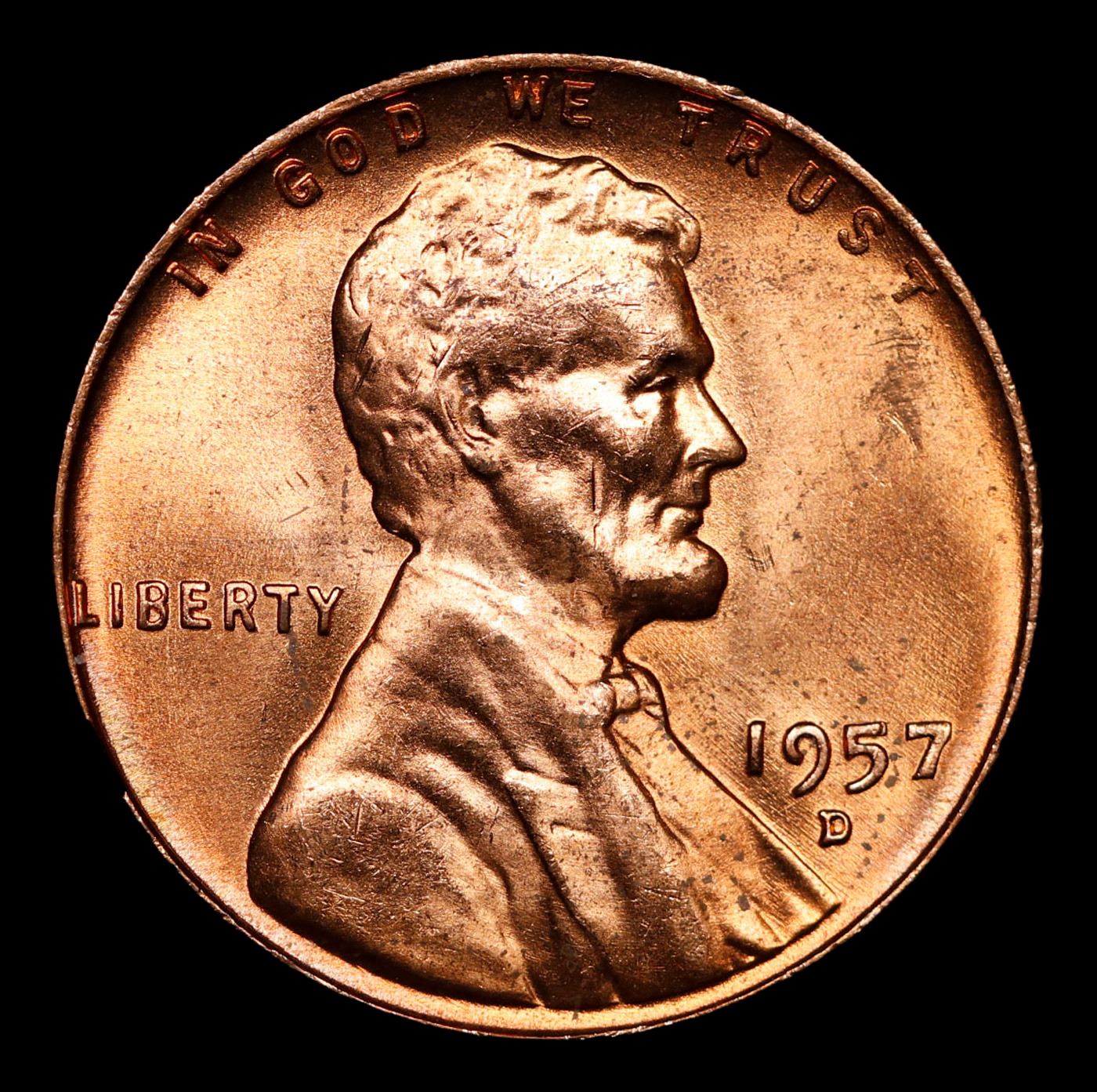 1957-d Lincoln Cent 1c Grades GEM+ Unc RD.