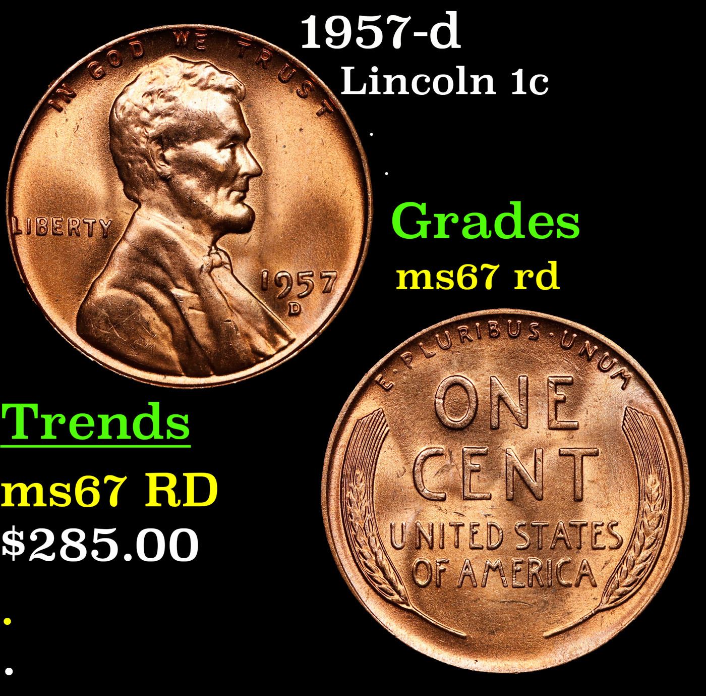 1957-d Lincoln Cent 1c Grades GEM++ Unc RD.