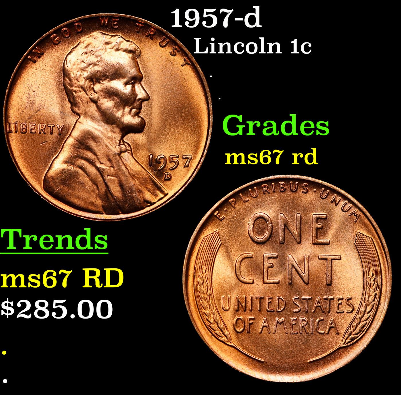 1957-d Lincoln Cent 1c Grades GEM++ Unc RD.