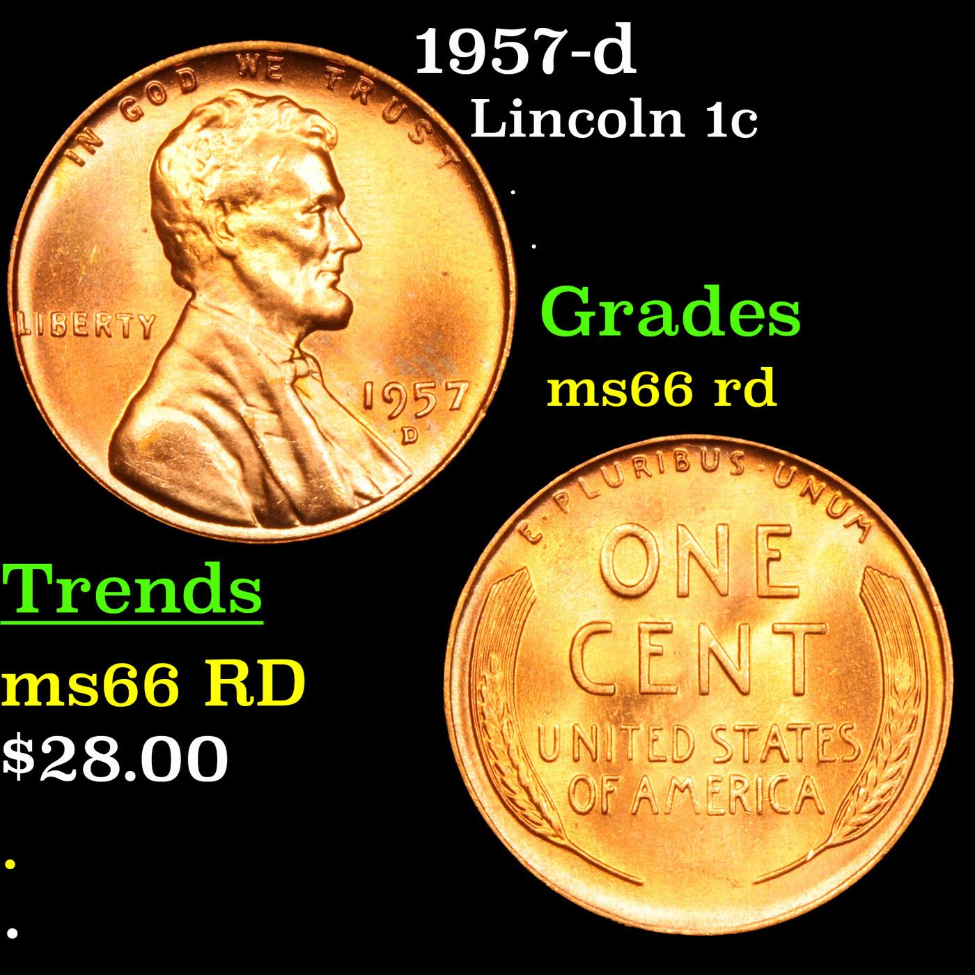 1957-d Lincoln Cent 1c Grades GEM+ Unc RD.