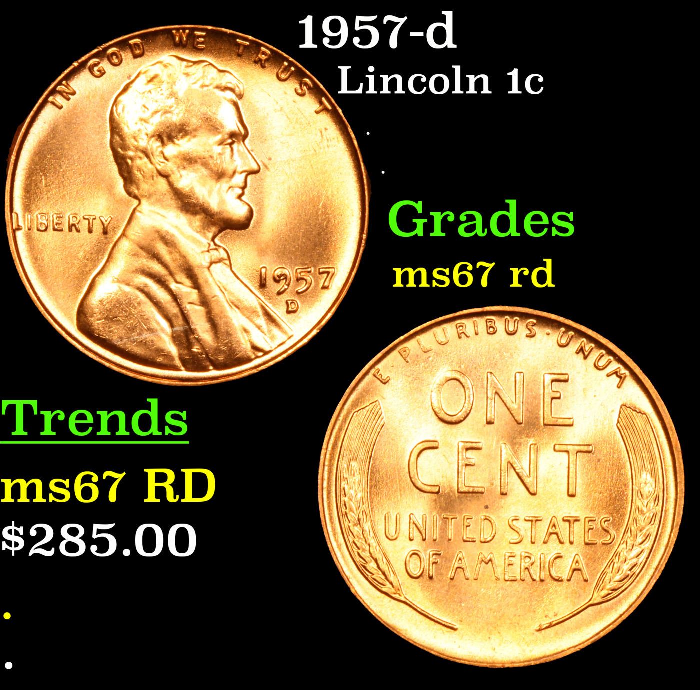 1957-d Lincoln Cent 1c Grades GEM++ Unc RD.